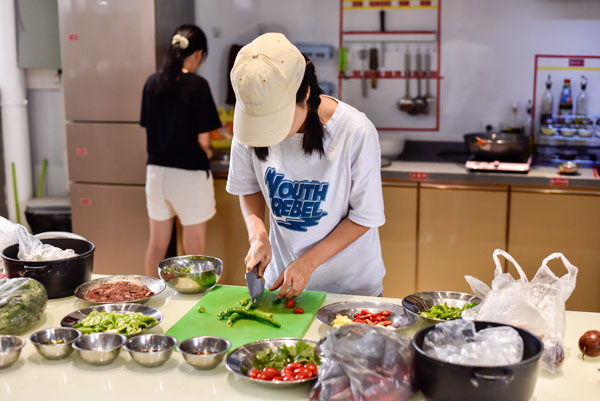 学生组菜肴烹制现场(新媒体中心王禹朋 摄)