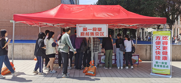 同学们还在为下课用餐高峰期在食堂排长队而苦恼吗?不用再苦恼啦!新学期,本着为师生办实事的初心,学校后勤处推出了安心又安全的膳食新服务,为师生提供“不进食堂,轻松购餐”的全新购餐体验。从10月份开始,各食堂在户外开设套餐售卖点,开启食堂套餐快捷购餐通道。