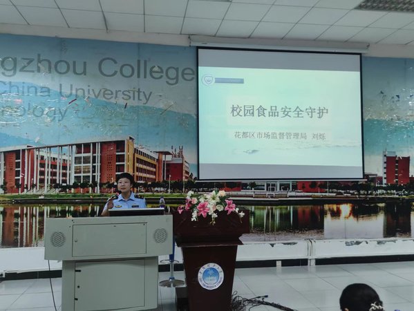 随后,花都区市场监督管理局刘烁进行食品安全专项培训。刘老师从校园食品安全相关的法律法规、严格做好食品准入及审查工作,学校食堂食品安全案例分析、学校食堂食品安全风险管理、学校食品安全档案管理以及学校食品安全常见的不合格情况等6个方面进行详细讲解,培训过程穿插现场提问的互动环节,加深了学员们对知识的掌握,取得良好的培训效果。