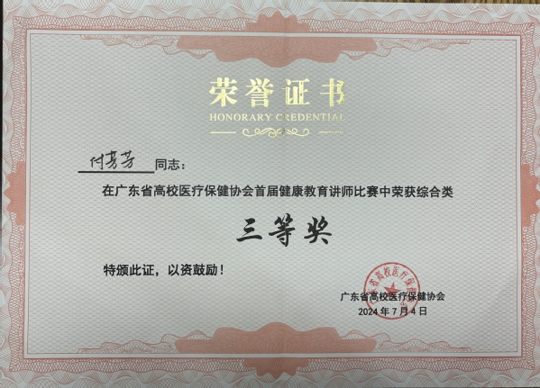 决赛现场,付芳芳老师以图文并茂的PPT为辅助,进行了精彩纷呈的现场展示,她不仅主题鲜明地阐述了传染病防控的重要性,还条理清晰地讲解了各项关键知识点,充分展现了bevictor伟德健康教育的特色与水平。其专业素养与综合能力得到了评委们的高度评价,最终荣获综合组三等奖,为bevictor伟德赢得了宝贵的荣誉。
